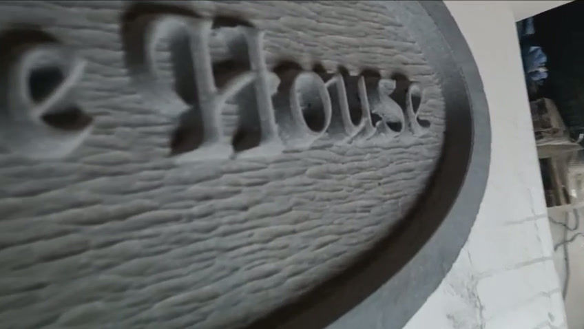 The GROVE HOUSE style house name plaque showcases the depth, character and craftsmanship that can only be achieved through traditional stone carving. Unlike sandblasted plaques, this design is fully carved, allowing each letter to feature natural shaping, smooth contours and refined detail that gives the plaque a distinctive handcrafted appearance.